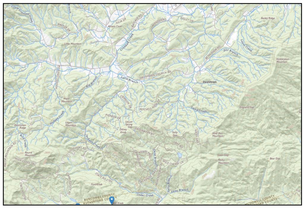 Peter Vess obtained land on Cedar Creek in Rutherford County, North Carolina in 1831. This property is located in the Broad River Township, which is sandwiched in between Buncombe and Burke County. Peter’s property is close to the Crooked Creek area, where we are finding records of him in Burke County.
